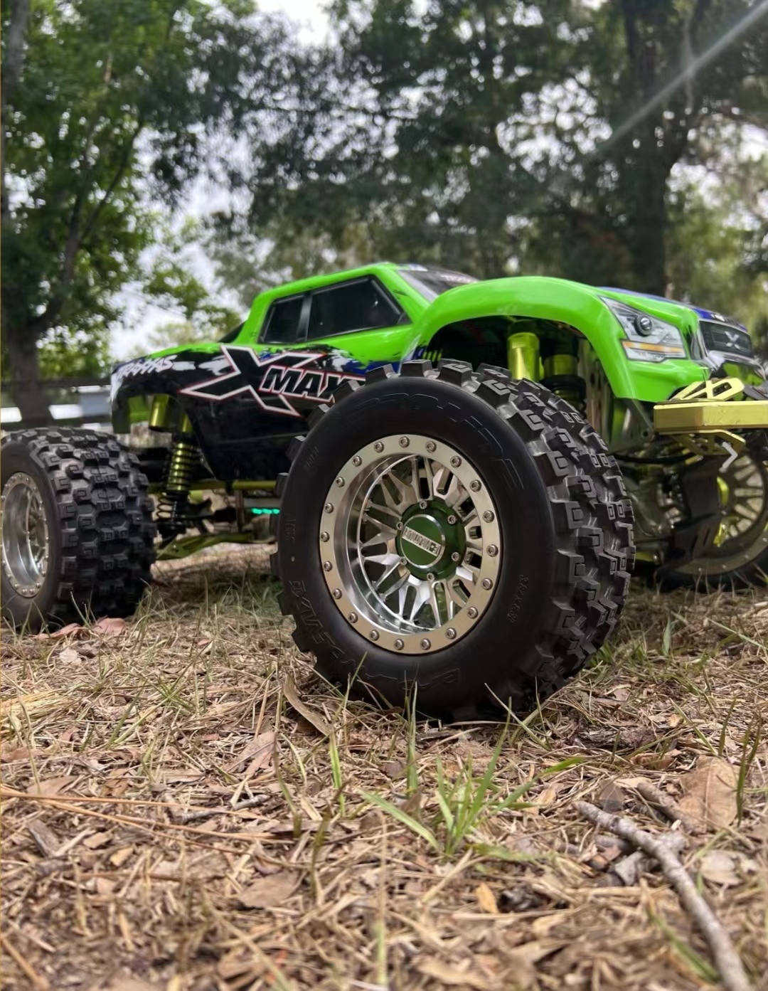 3. The aluminum wheel fits the PRO-Line BADLANDS MX43 Tire(part#10131-00 /#10146-00 / #10151-00) for Losi DBXL-E 2.0 1/5 & Losi DBXL 2.0 GAS &TRAXXAS XRT/XMAXX 8S 1/5&ARRMA Kraton/Outcast 1/5&30 Degree North truck 1/5.